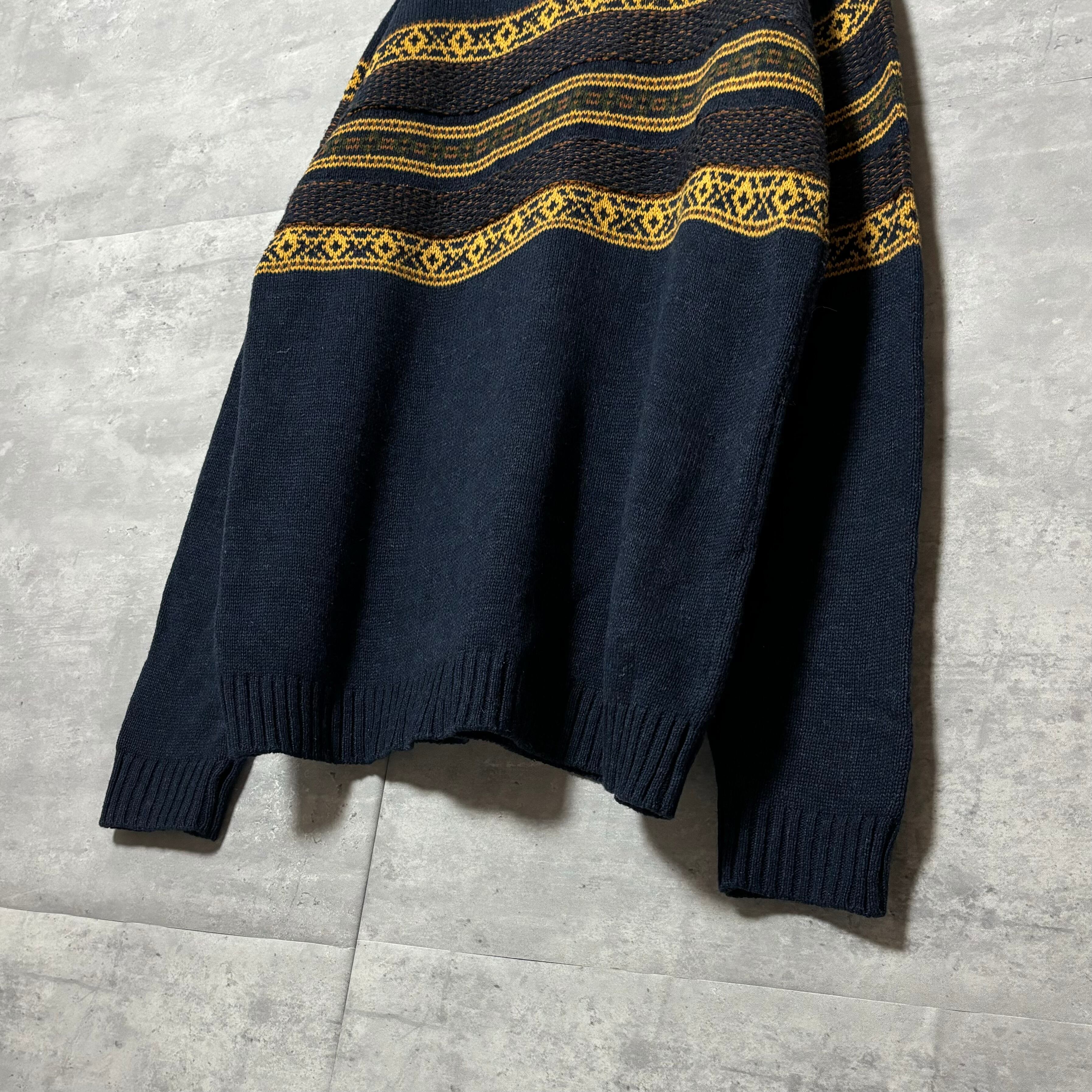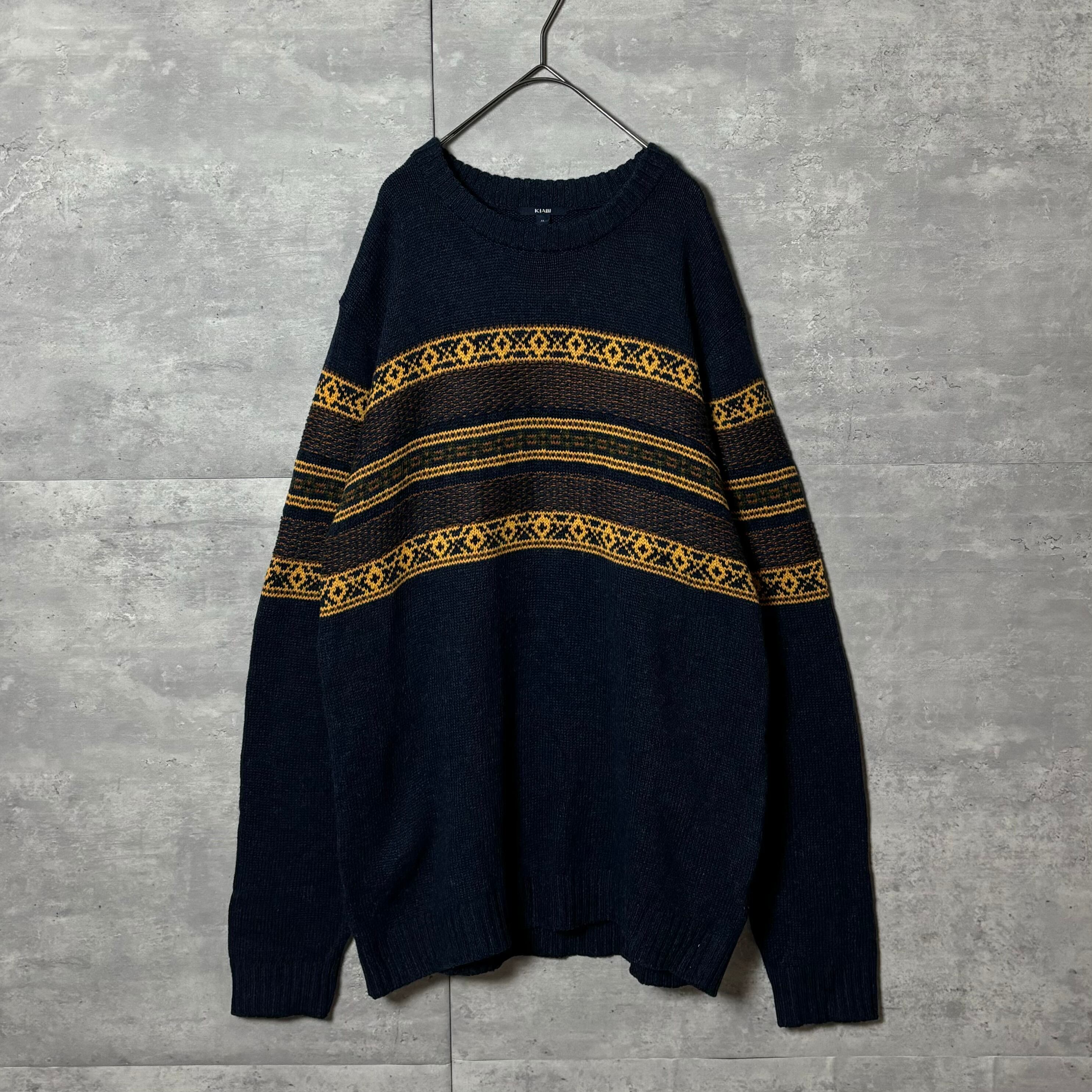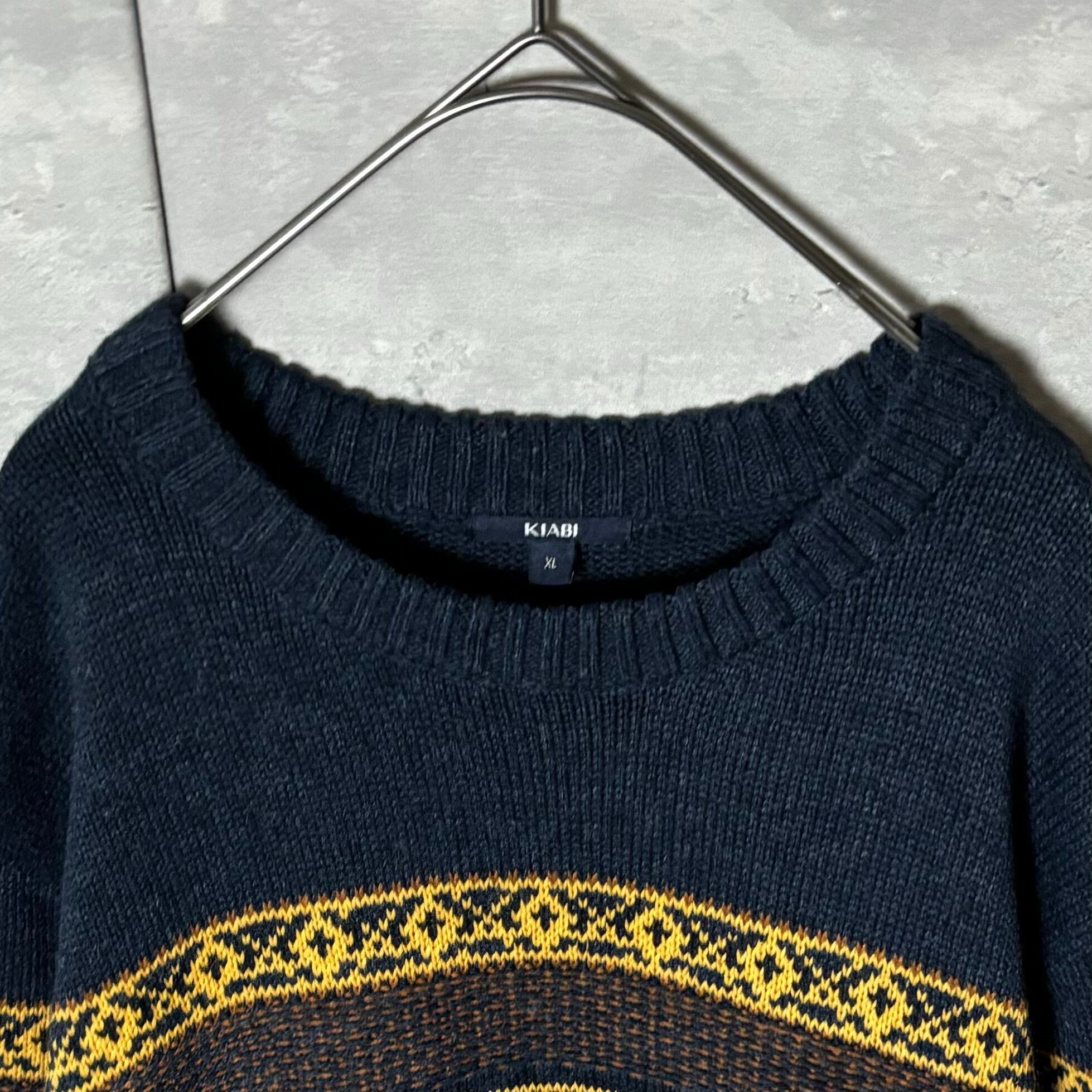 KIABI ヴィンテージ風 ノルディック柄セーター XLサイズ ネイビー