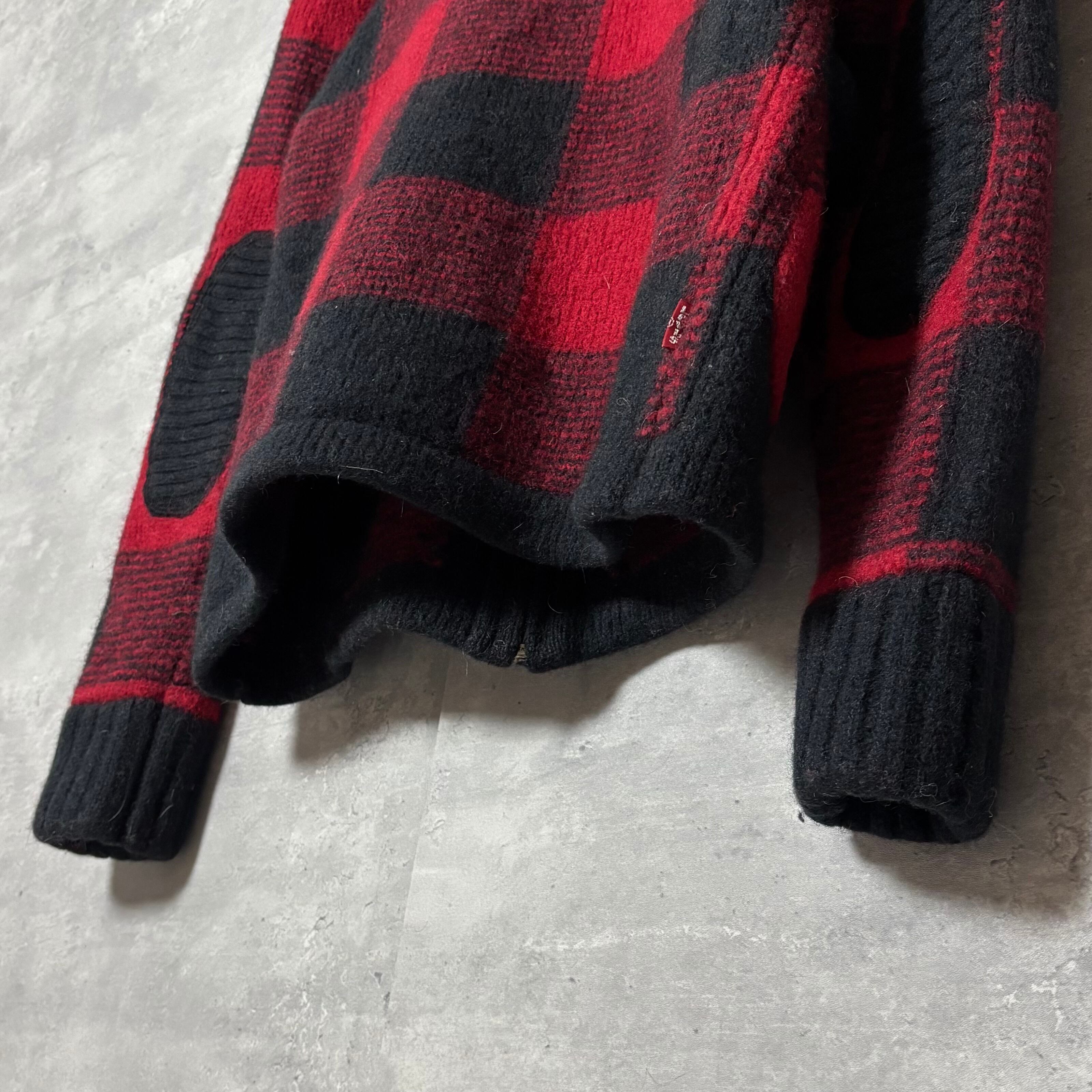 Levi's, ニットジャケット, バッファローチェック, ウール混, レッド×ブラック, エルボーパッチ, 古着, メンズアウター, ユーズド感