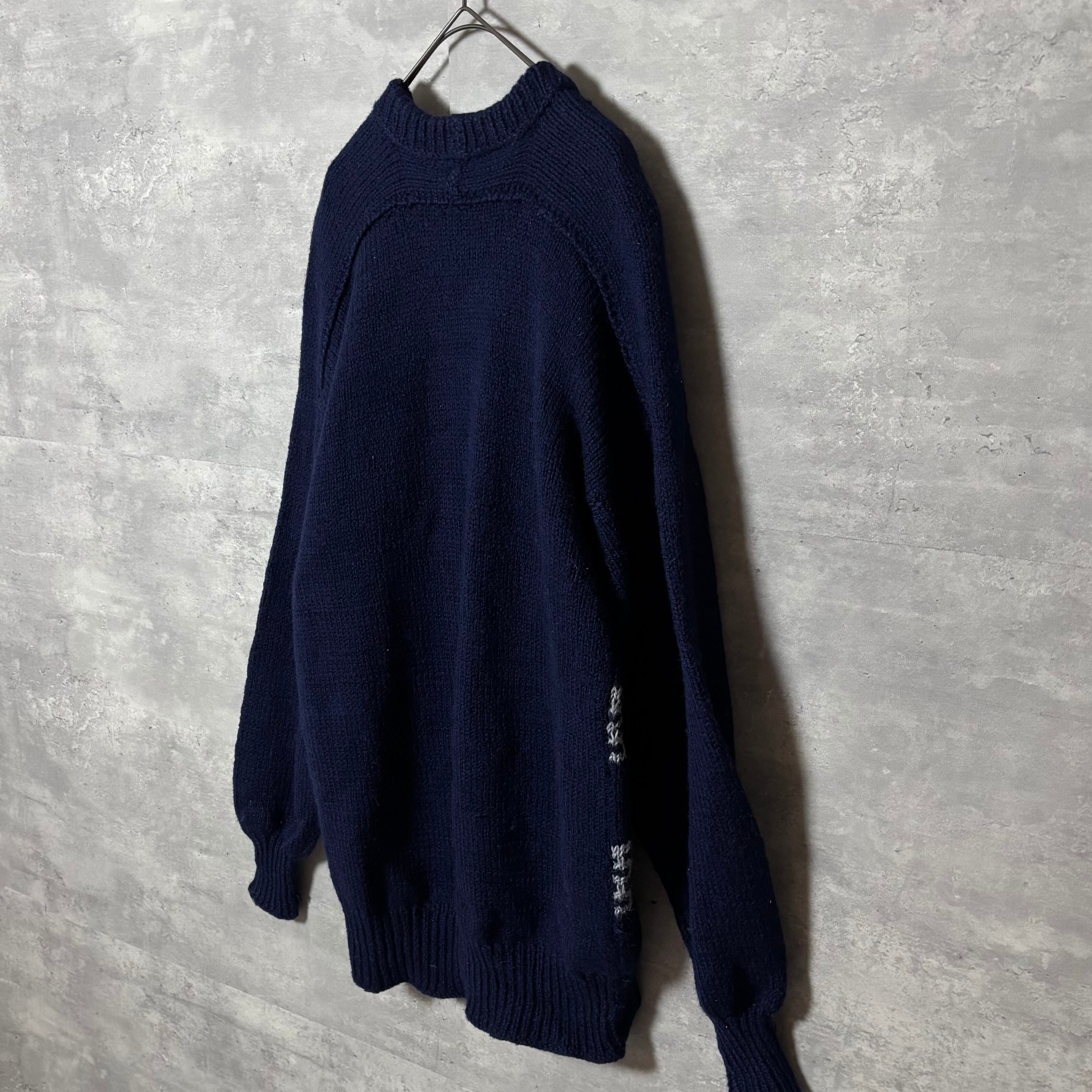 ヴィンテージ, チェック柄, ニットセーター, ユーズド, 冬物, ネイビー, Lサイズ
