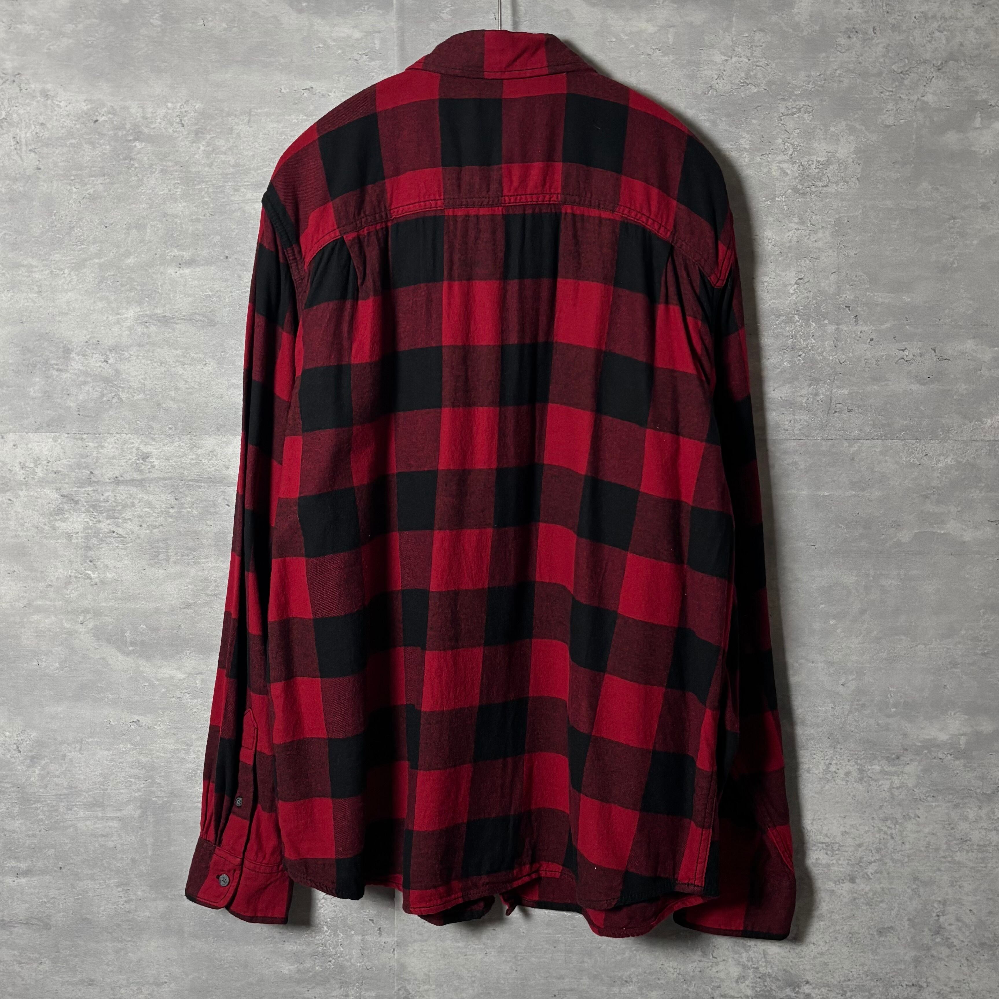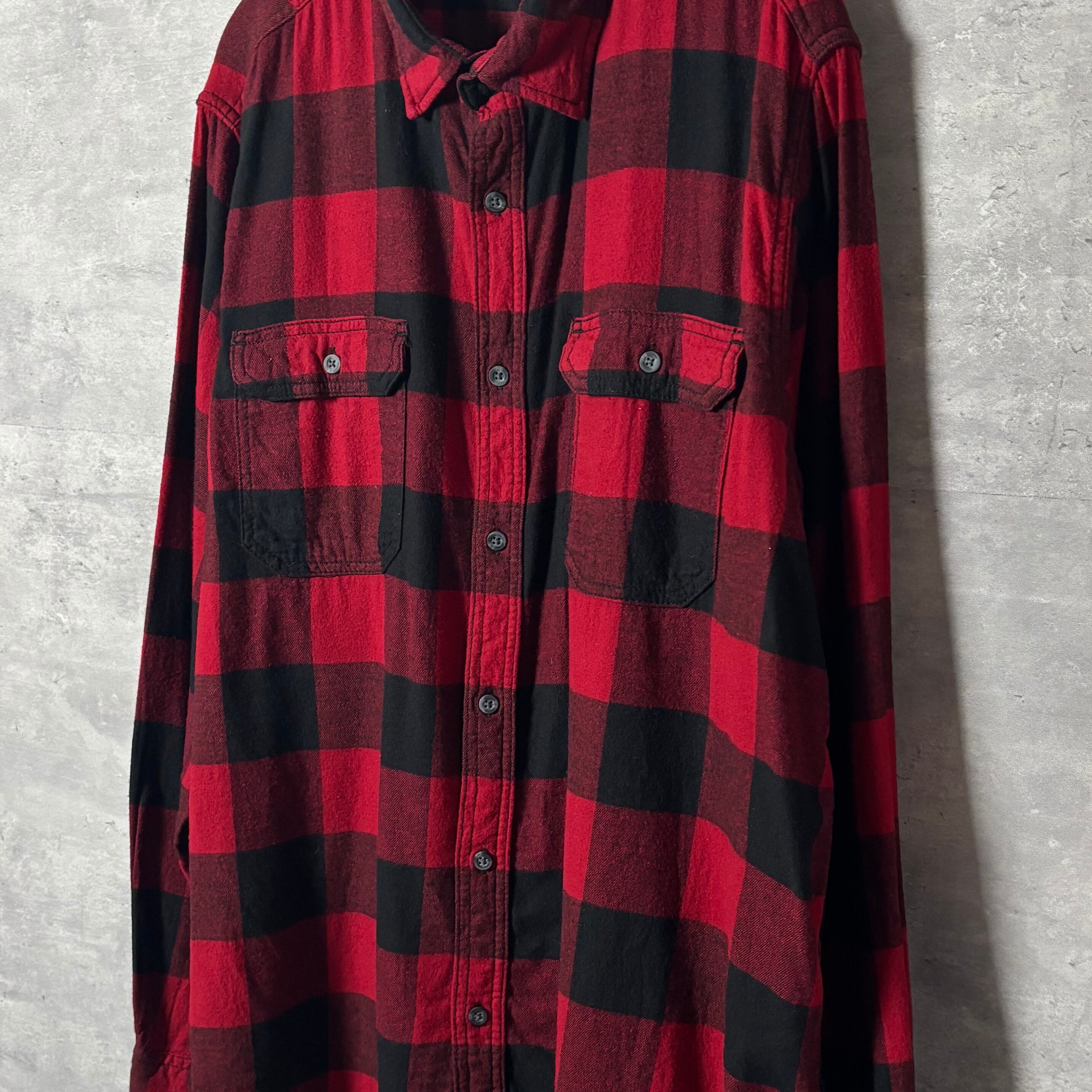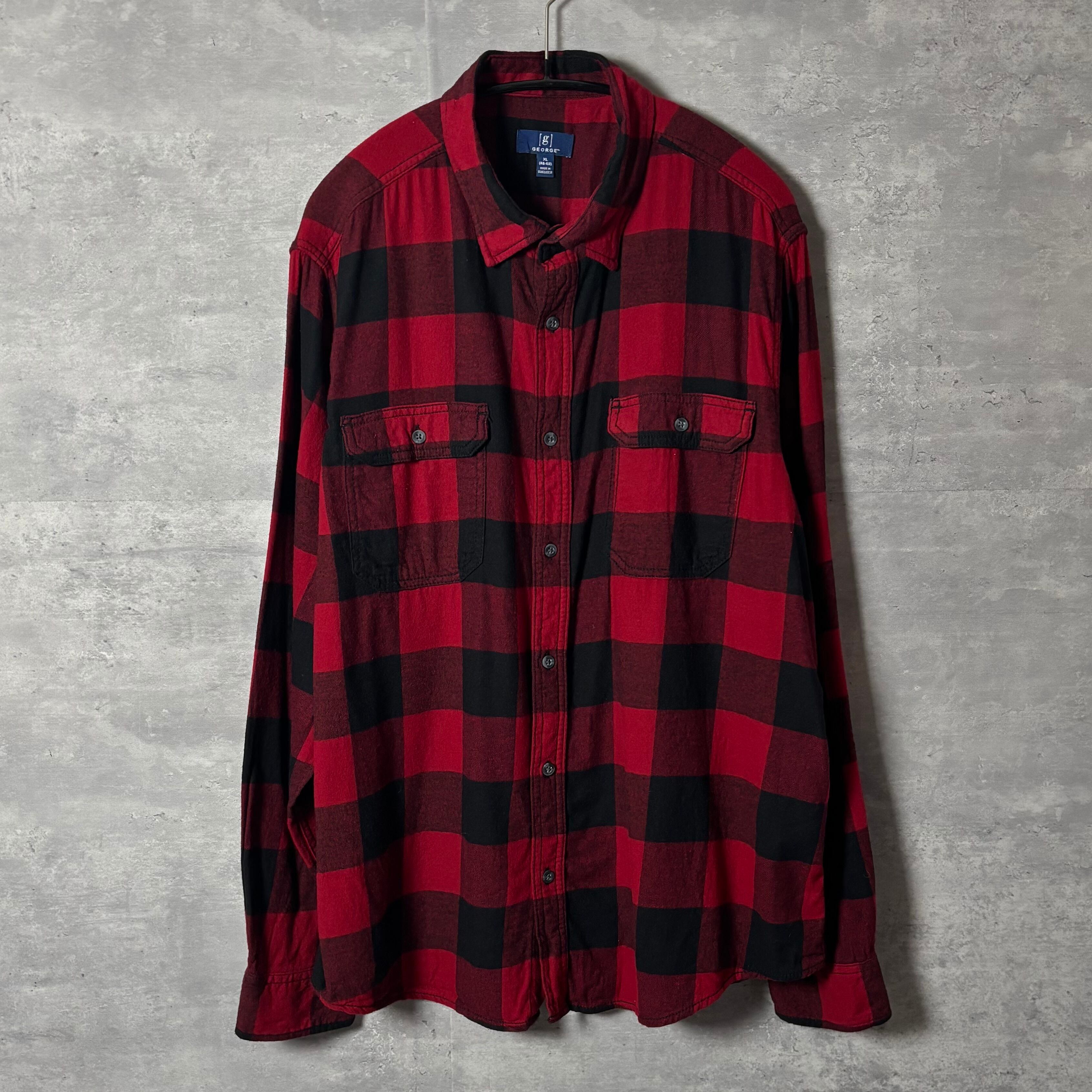 GEORGE バッファローチェック 長袖ネルシャツ 赤黒 XLサイズ