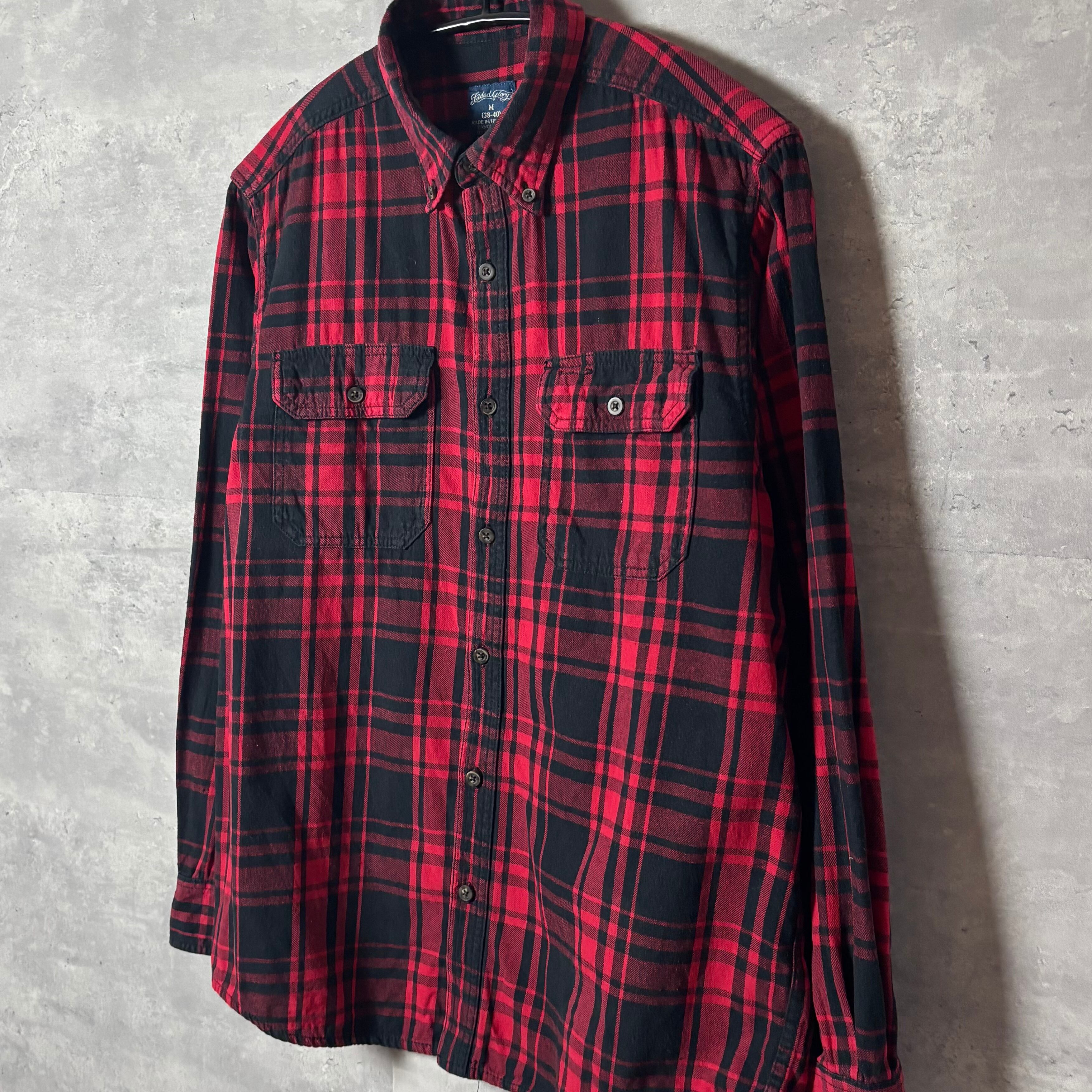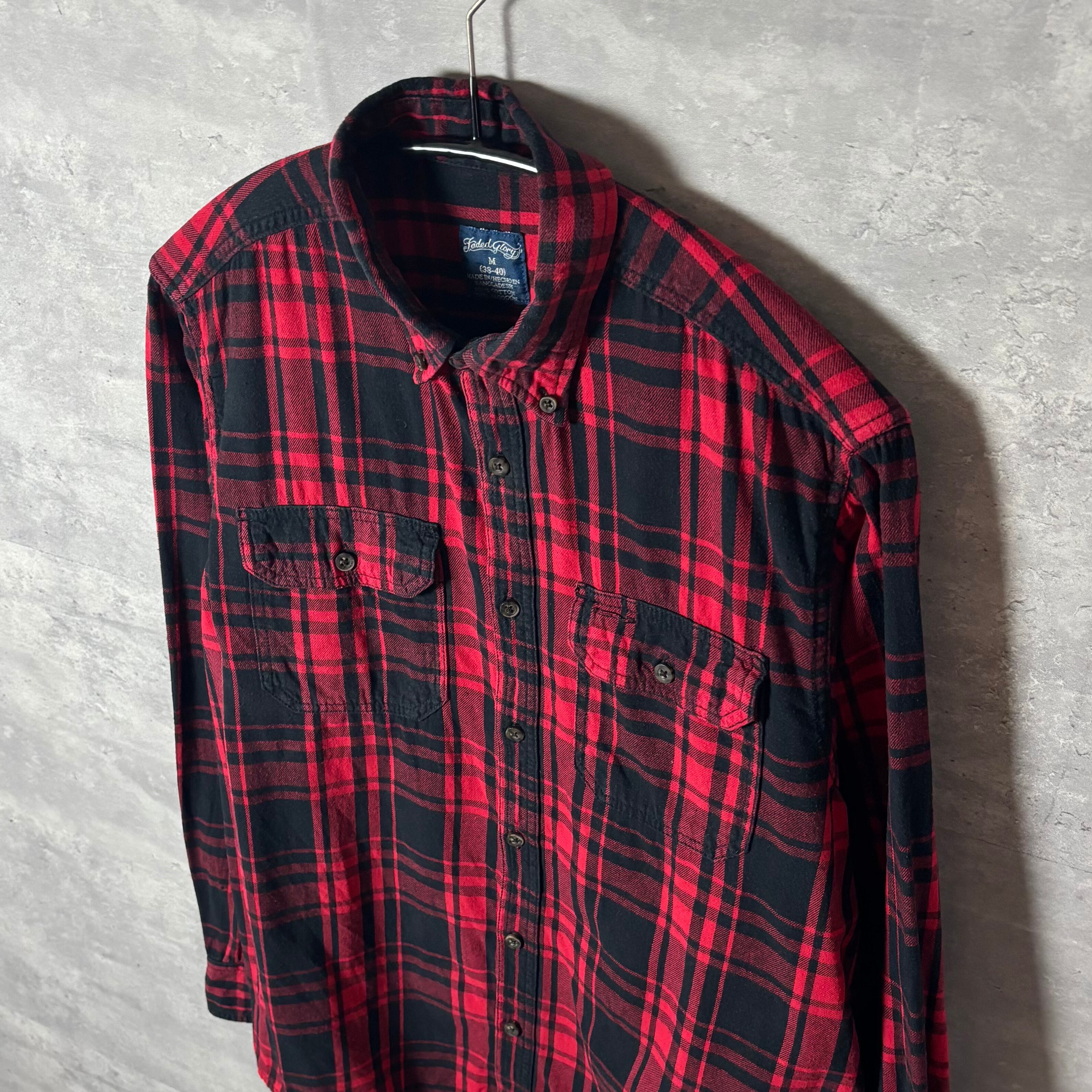 Faded Glory チェック柄 フランネルシャツ M 赤×黒 長袖